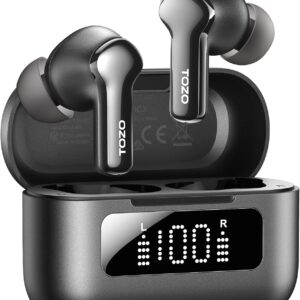 TOZO Hybrid Active Noise Cancelling Wireless Earbuds with 6 Mics AI Clear Call Ear Buds 68H Playtime with LED Display 32 Preset EQs via APP Bluetooth 5.3 IPX8 Waterproof in Ear Headphones