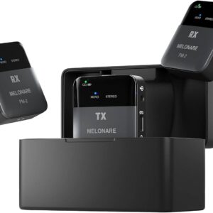 MELONARE PM-2 Portable Wireless in Ear Monitor System w/Charging Case, Wireless Audio Transmitter and Receiver, 24bit/48kHz Audio, OTG Input, Mono/Stereo Switch, IEM for Live Shows, Studios, Bands